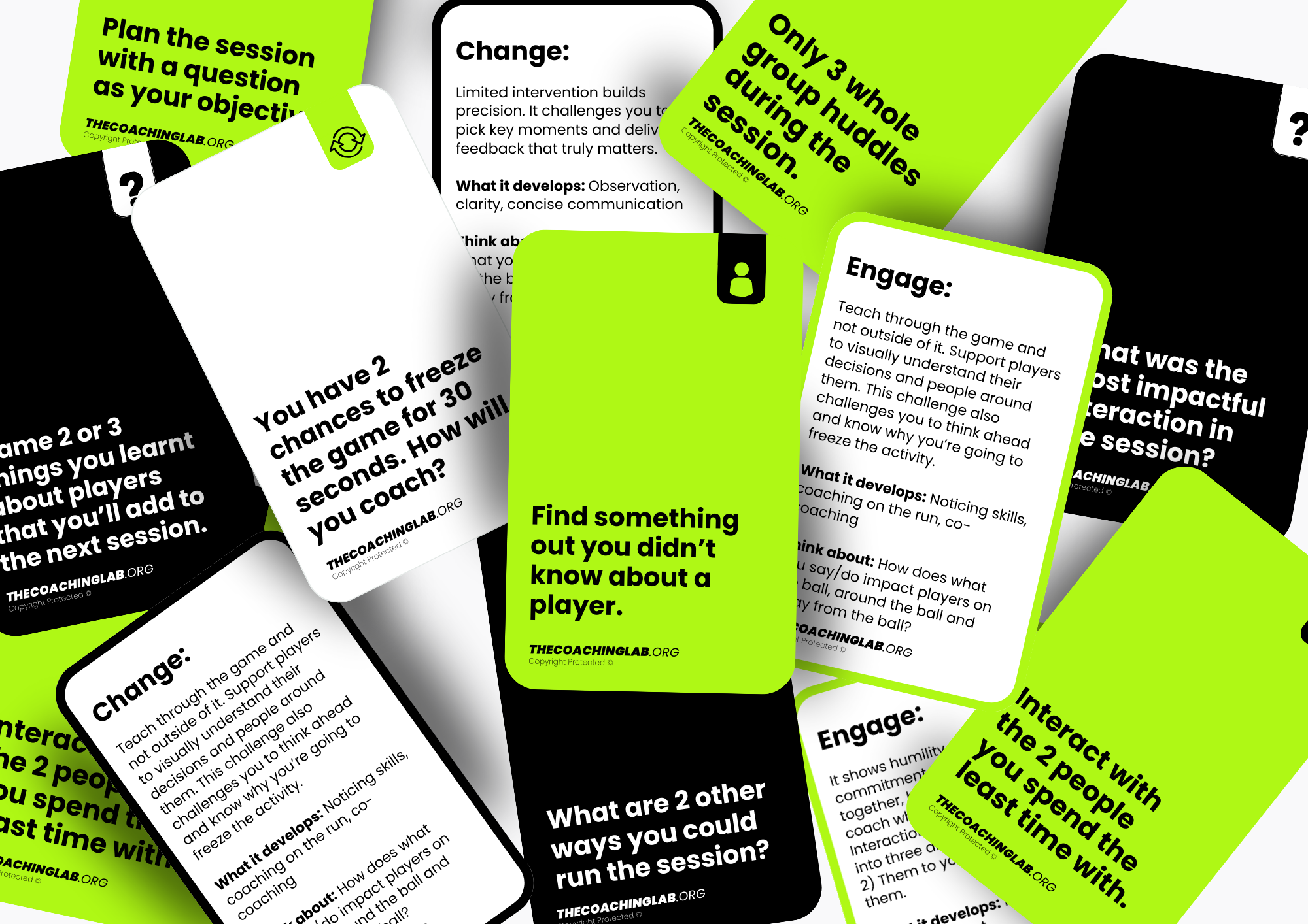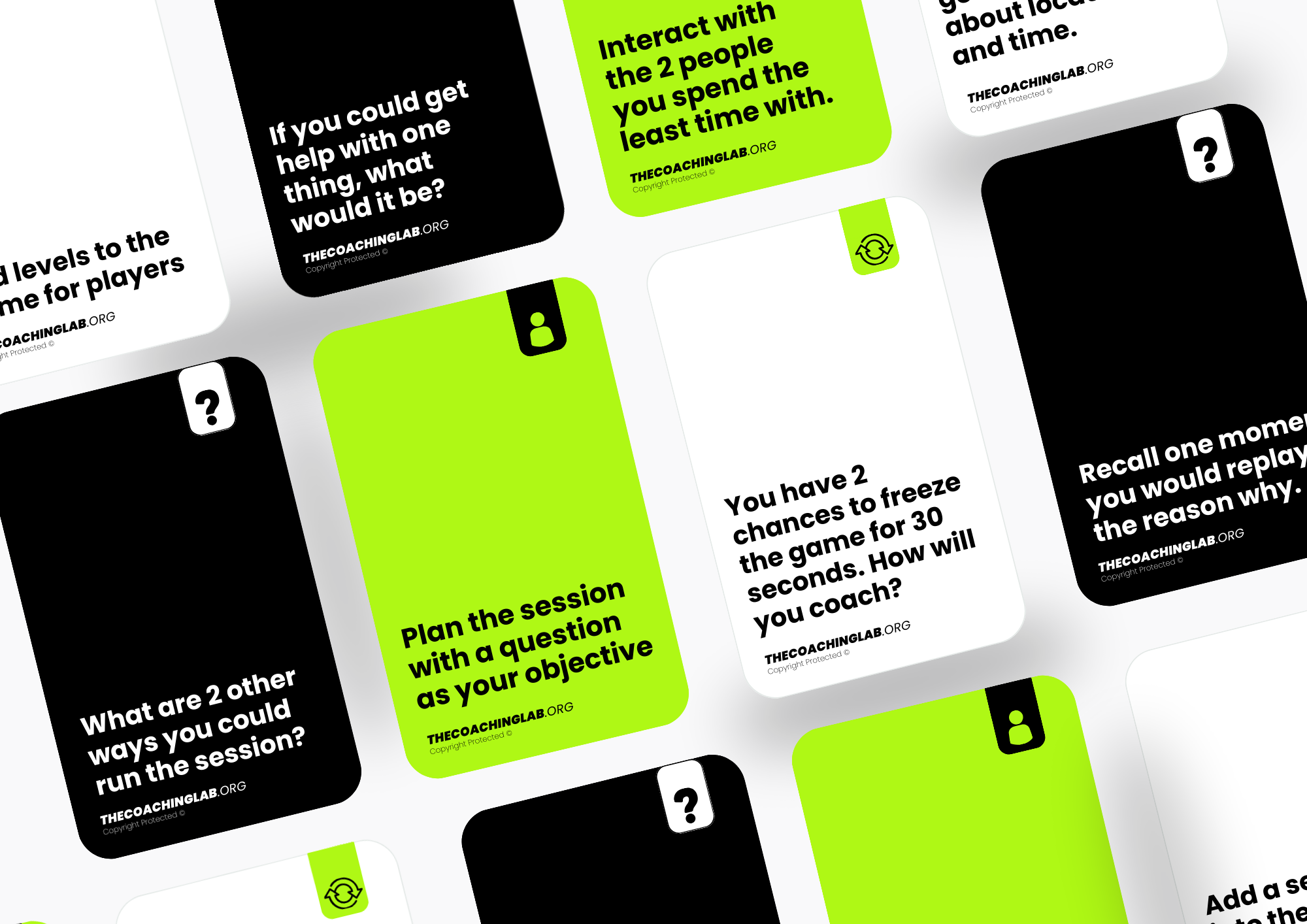 Developed by world-class coach developers and expert coaches, these challenge cards transform your sessions and workforce with timeless, expert-backed knowledge and frameworks.