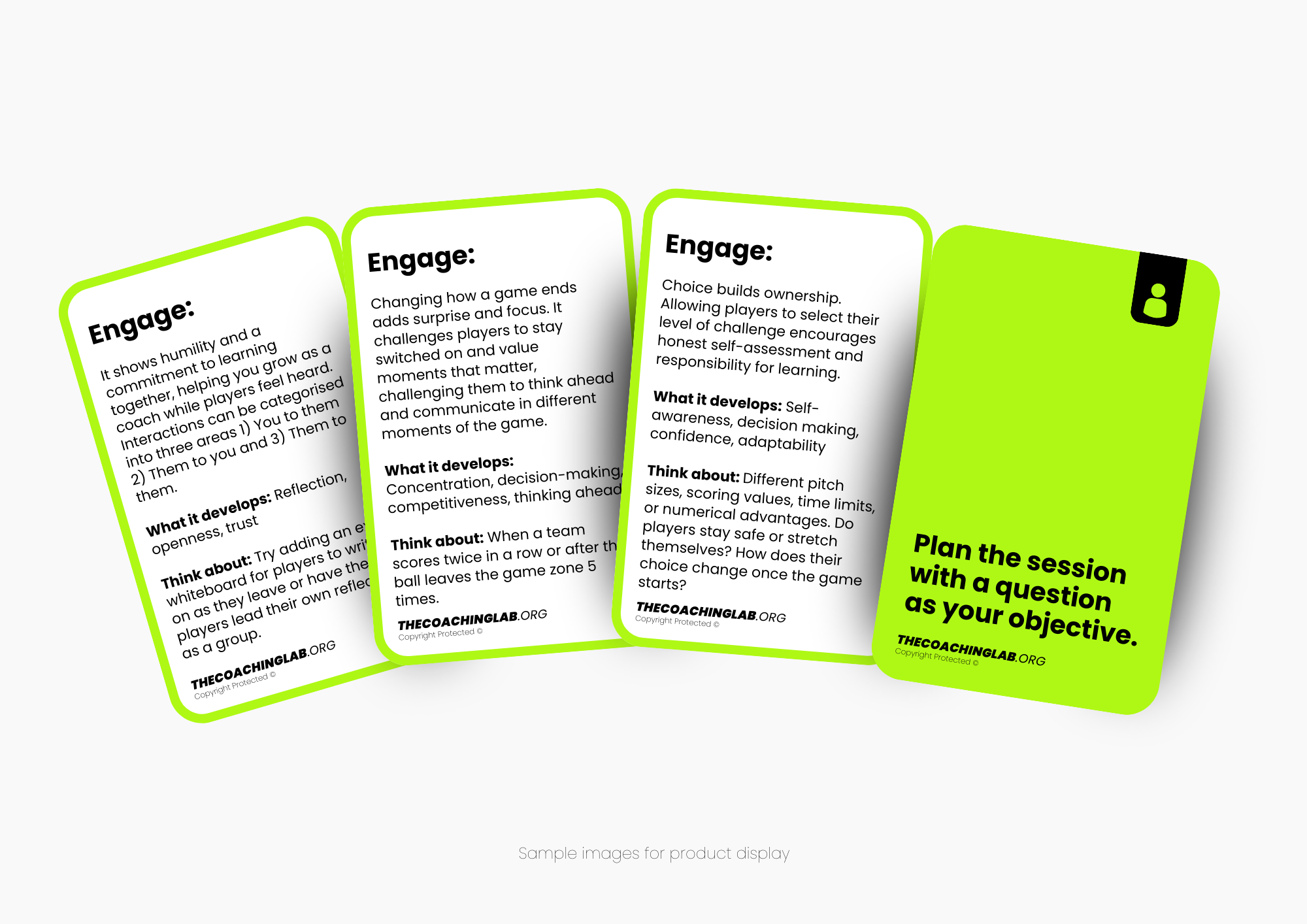 Immediately. Coaches can pick up a card and apply it in their next session without additional training. One resource used by specialists, non-specialists, and volunteers alike.